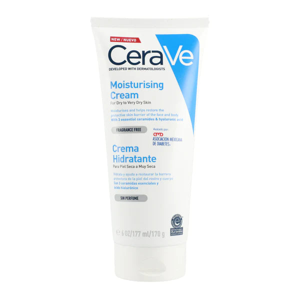 Nuestra Crema Hidratante Cerave, formulada por expertos dermatólogos, es una solución rica y no grasa de rápida absorción para pieles secas a muy secas. Con tres ceramidas esenciales y ácido hialurónico, mantiene la piel hidratada por 24 horas y ayuda a fortalecer su barrera protectora. Adecuada para piel seca, irritada, con picor o tendencia atópica.