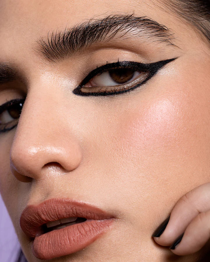 Delineador líquido para ojos tipo plumón color negro intenso.