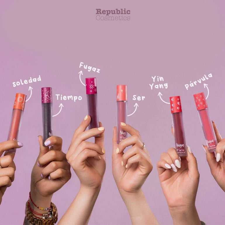 Tintas Multiusos Yuya son una tinta multiusos con extracto de Aloe Vera que brinda un toque único de color en ojos, mejillas y labios. Sus 6 tonos se adaptan a tu piel y su fórmula intransferible y de larga duración permite construir un acabado mate impecable. Versátil y duradera, ideal para un look único.